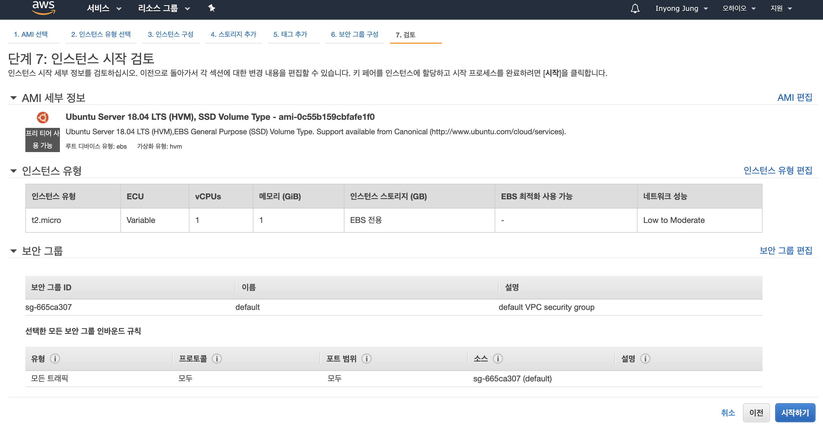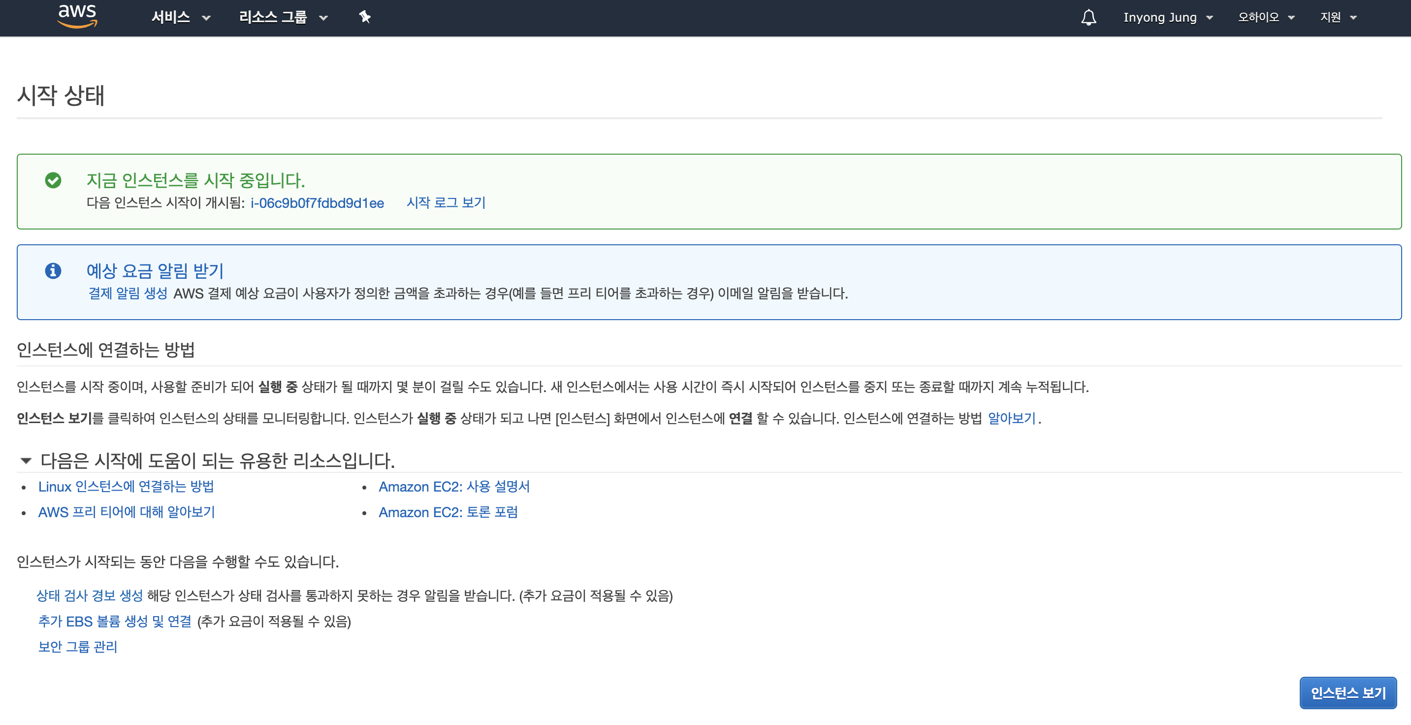 6. 확인 페이지에서 인스턴스 실행 중인지 확인