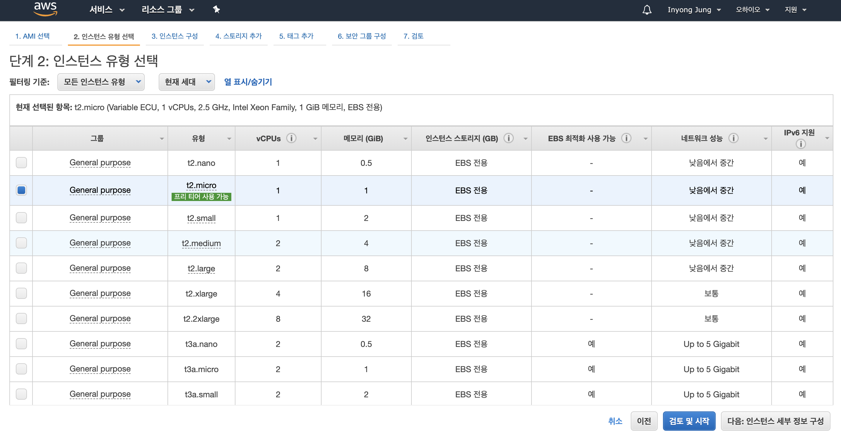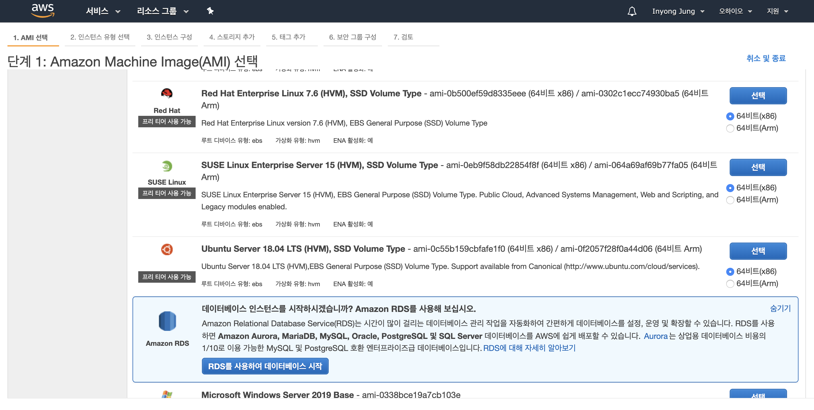 EC2 콘솔화면 3. 아마존 머신 이미지를 선택한다.(나는 우분투로 선택)