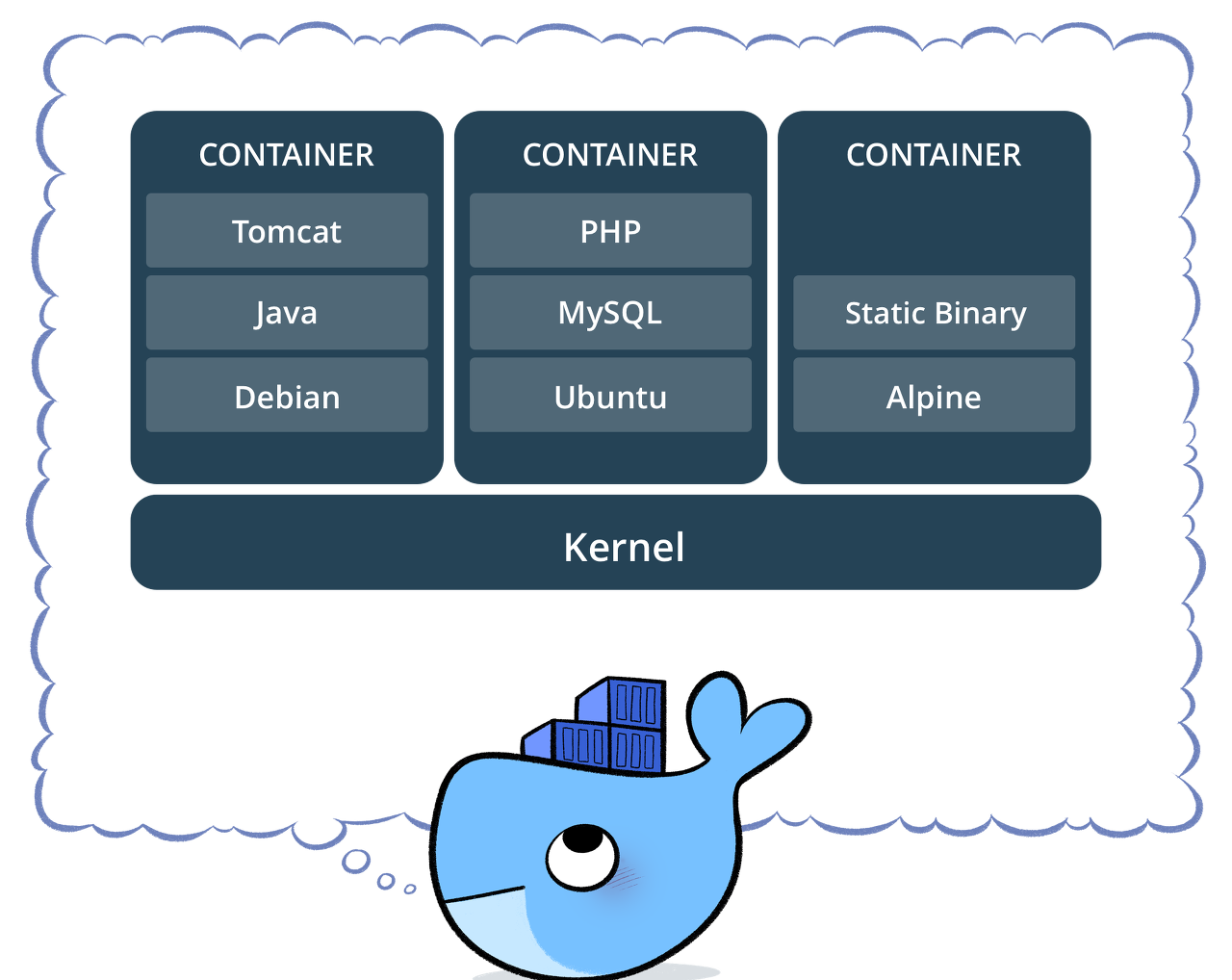 Docker에서는 각 각의 가상 환경을 컨테이너라고 부른다. 어떻게 보면 VMware나 VirtualBox와 같이 가상 OS를 생성하여 독립적인 개발환경을 만드는 것과 같다고 볼 수도 있다.