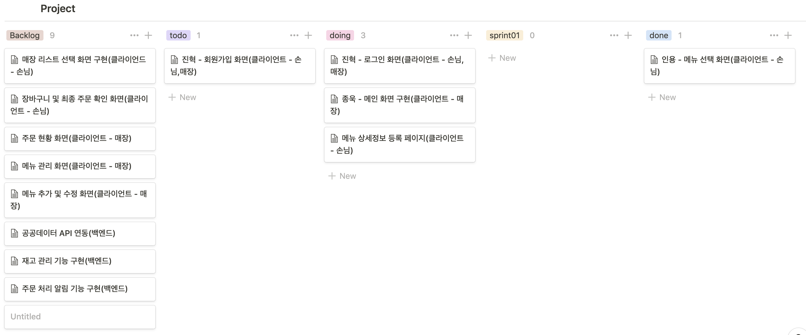 - - 스프린트 별 todo도 만들어서 조금 더 세분화 시켜놓으면 좋을 것.