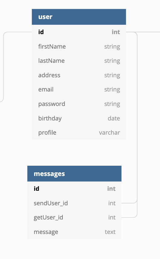 messages 테이블에 칼럼으로 메세지를 보내는 유저id, 메세지를 받는 유저id 두개를 외래키로 갖는다.