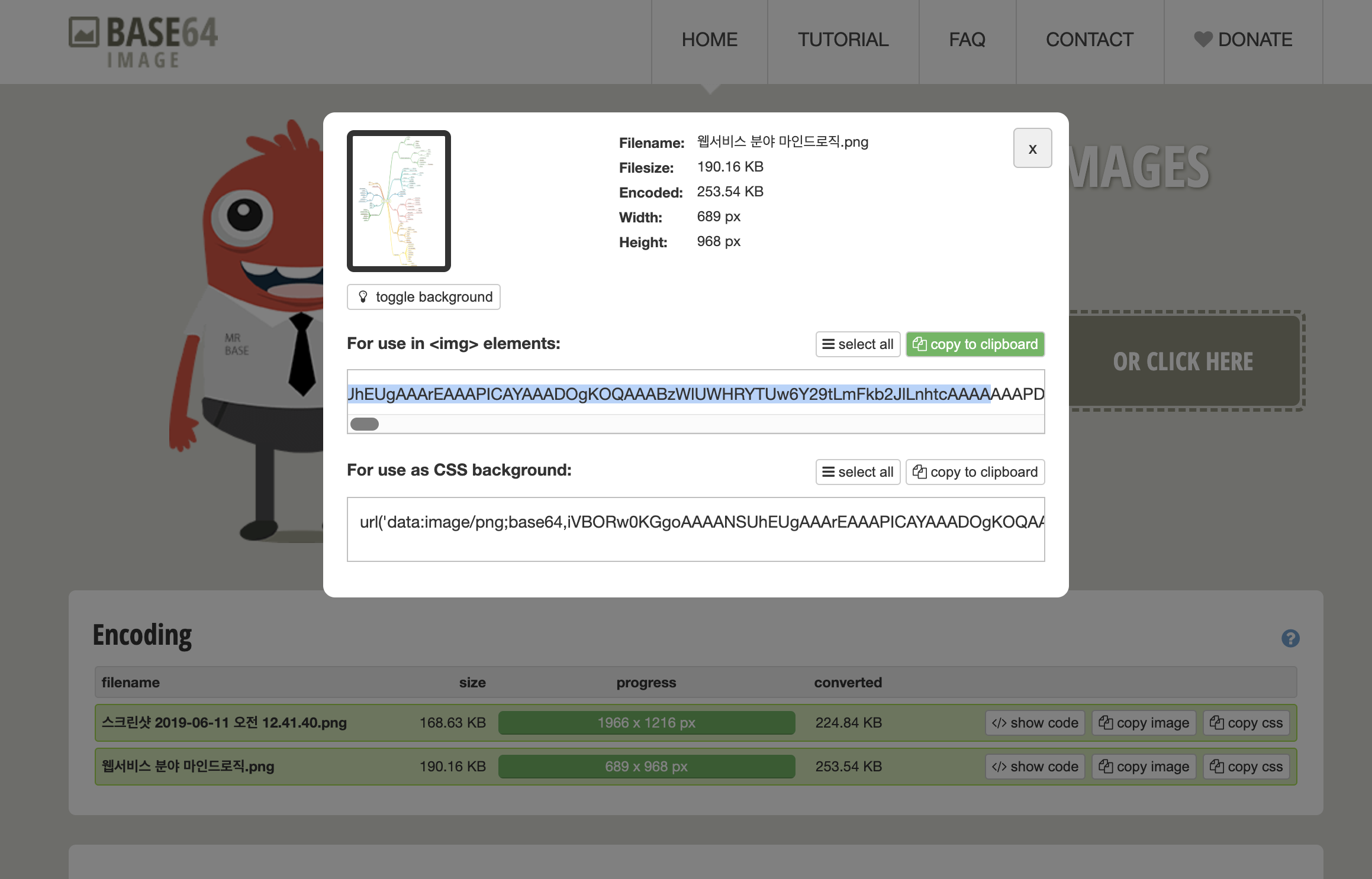 그래서 image base64 사이트에서 파일을 인코딩 시킨 값을 가져왔다.