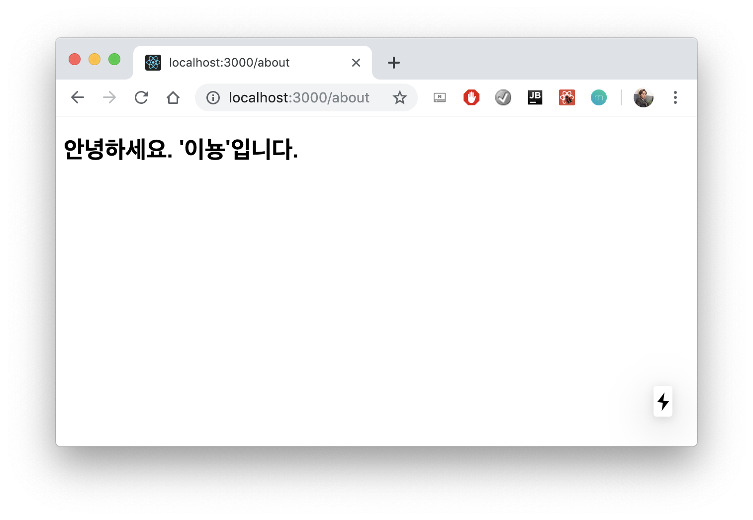 const About = () => ( <div> <h2>안녕하세요. '이뇽'입니다.</h2> </div> ); export default About;pages에 about.js라는 페이지 파일을 하나 더 생성한다.