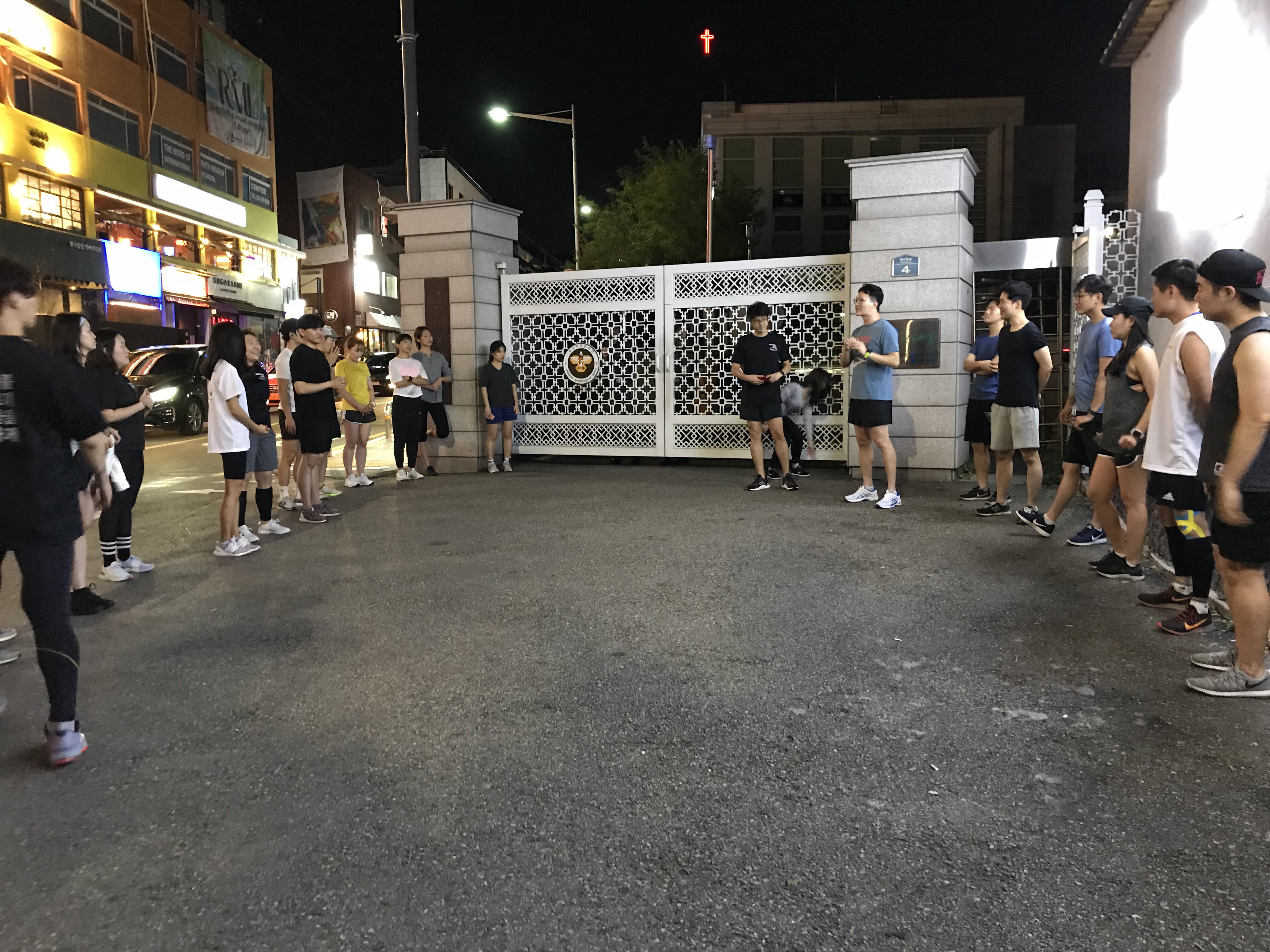 맨 처음에 3키로를 뛰고, 이후에 다 같이 모여서 서로 각자 인사하는 시간을 가졌다.