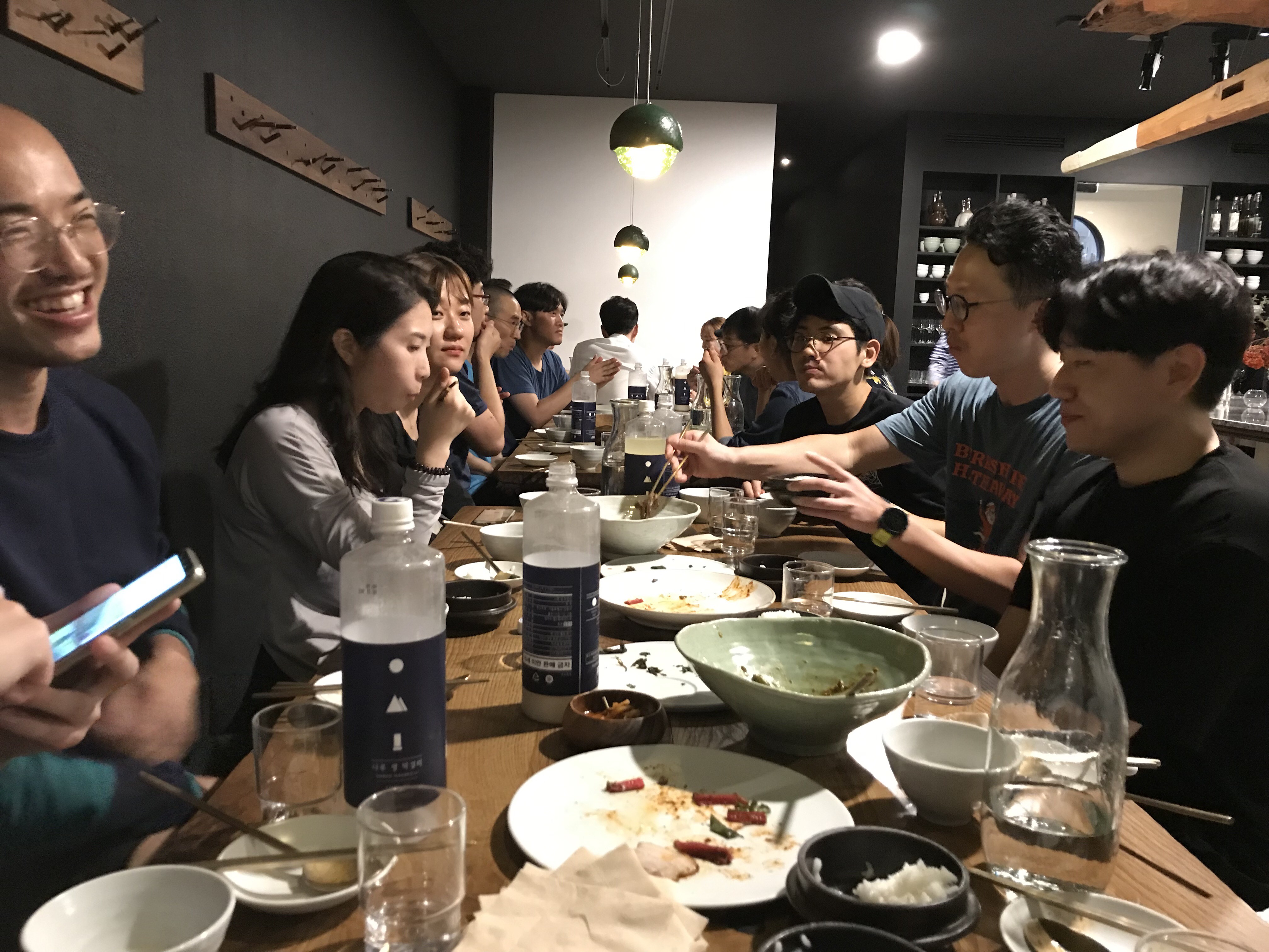 다 같이 막걸리 짠 하면서 서로 얘기하면서 친해지게 되었다.