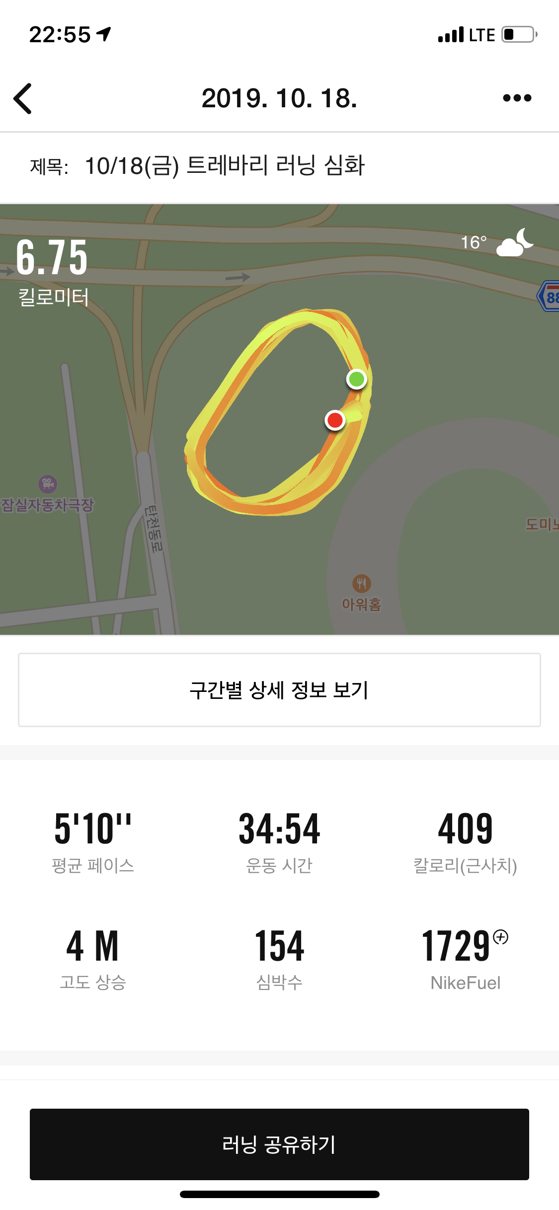 숨은 차지 않았는데, 발목과 발바닥에 위기가 느껴져서 계속 인터벌로 완주를 하지 못한 게 너무 아쉬웠다.ㅜㅜ