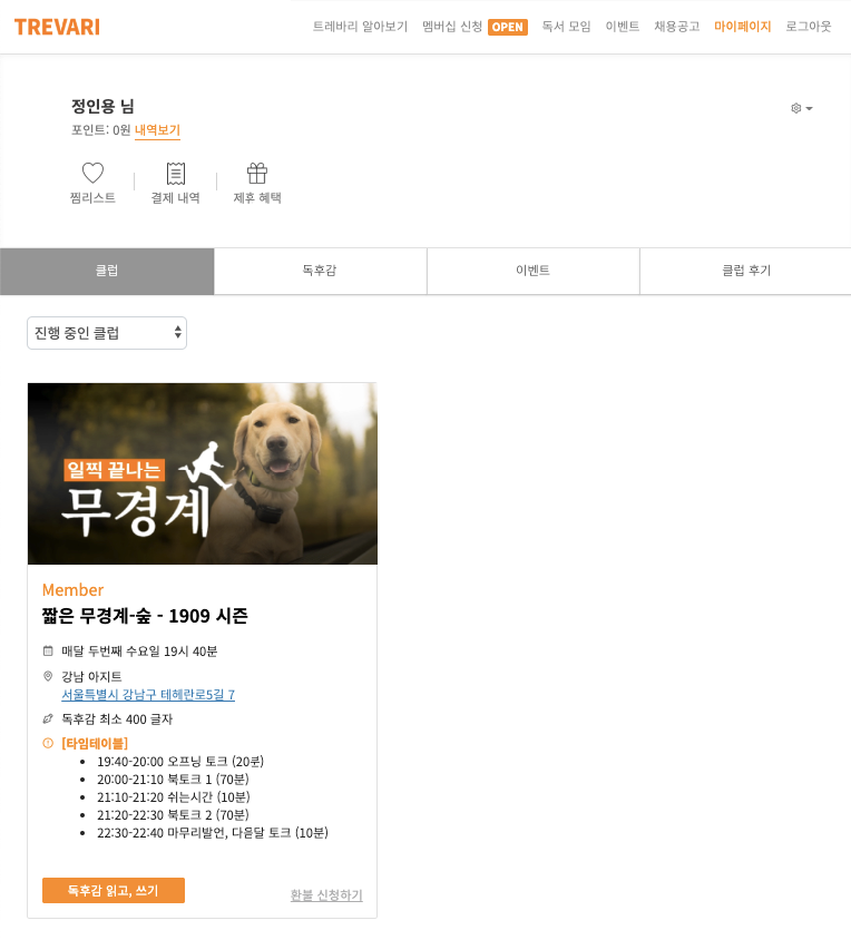 내가 만든 마이페이지가 멤버들이 트레바리 활동을 하는데 많은 도움이 되었으면 좋겠다~!