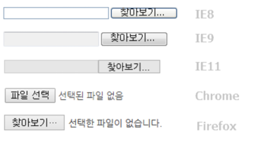 input type file을 쓰면, 각 브라우저마다 아래와 같이 나타나게 된다.