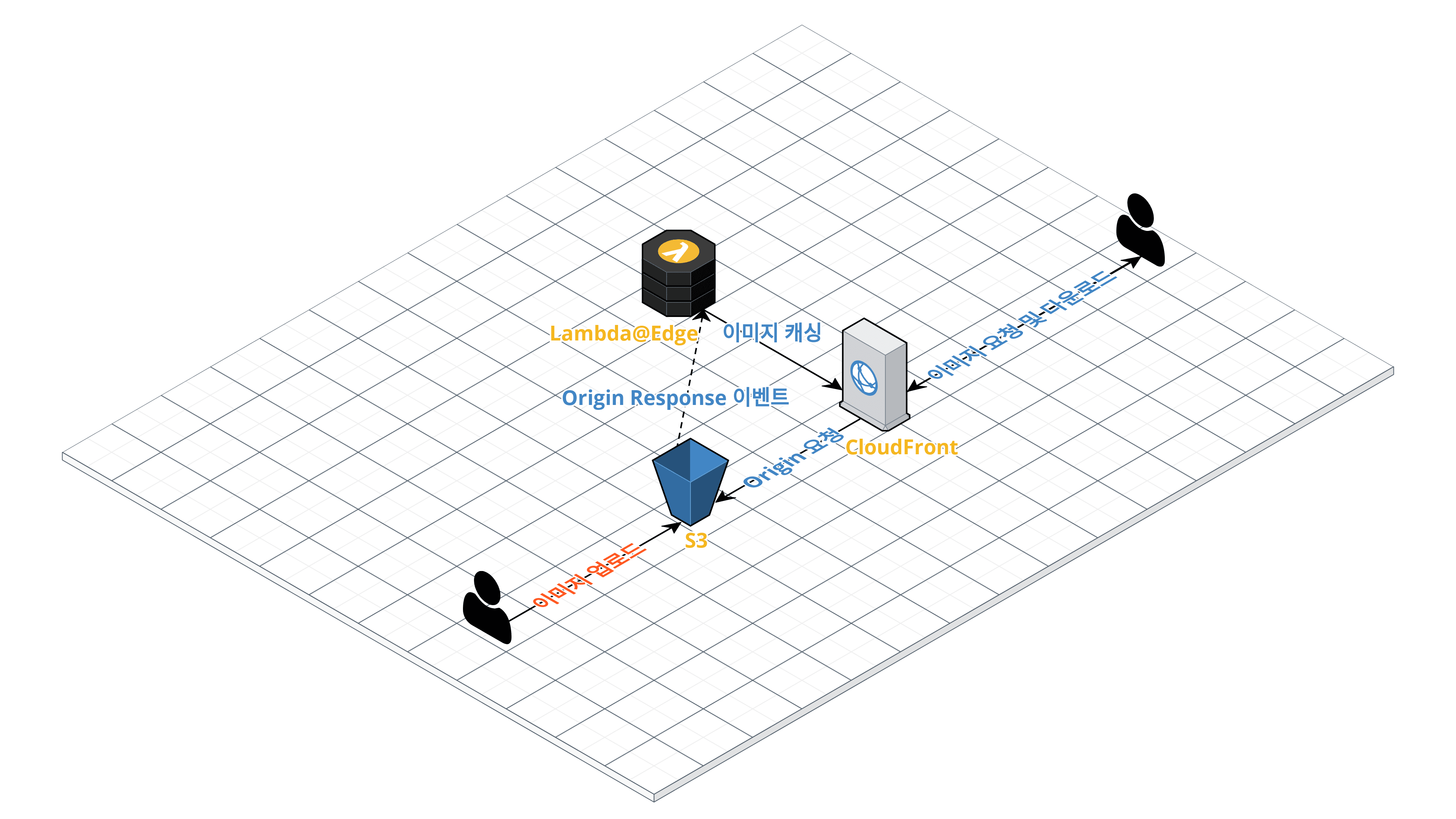 (무조건 버지니아 북부 리전에만 Lambda@Edge로 배포할 함수를 생성할 수 있다.)요청을 받은 S3는 CloudFront 안에 있는 Lambda@Edge의 함수를 실행키고, Lambda@Edge는 S3의 이미지 객체를 가져와서 리사이징 후 반환한다.