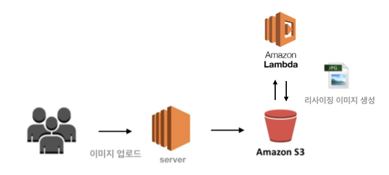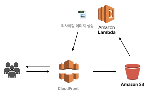 유저가 이미지를 요청할 때, S3 버킷 내 고화질의 이미지를 Lambda를 이용하여 리사이징 후 유저에게 전송한다.