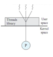 위 사진처럼, 사용자 수준 스레드는 하나의 커널에 여러 스레드가 붙는다.