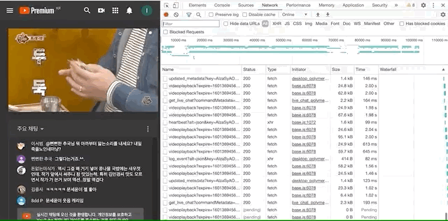 위 화면을 보면, 섬네일 이미지에 마우스를 갖다 대자마자 영상 재생을 위해 바로 필요한 데이터를 요청하며 엄청나게 많은 리소스를 계속해서 다운로드하는 것을 볼 수 있다.