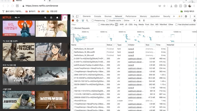 각 작품마다 이런 식으로 영상의 데이터를 가져오려면 엄청나게 많은 리소스가 필요할 것임에도 불구하고, 넷플릭스 웹 페이지에서는 엄청나게 빠른 속도로 영상을 재생시킬 수 있다.