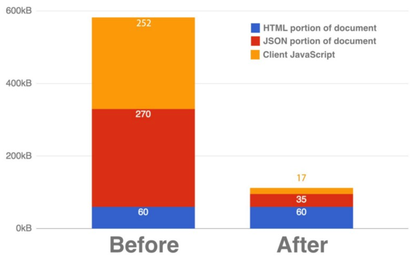 위 미디움에 따르면, 컴포넌트가 재활용성이 필요한 페이지나 동적 처리가 많은 스크립트 코드를 제외하곤, 기본적인 랜딩 페이지나 기본 동작 스크립트, 라이브러리들은 모두 리액트를 걷어내고 바닐라(Vanilla) 자바스크립트로 변경하여 위와 같은 성과를 얻을 수 있었다고 한다.