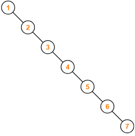 만약 트리 노드의 요소가 위처럼 한쪽 방향으로만 쏠려있다면 최악의 탐색 시간은 O(N)을 가지게 된다.