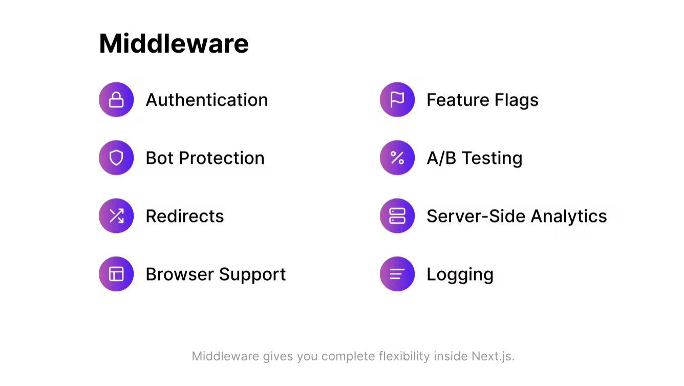 Next.js 내에서 미들웨어를 구성할 수 있게 됨으로써, 각 미들웨어 로직 별로 유저의 수신 요청에 따라 rewriting, redirecting, 헤더 추가, 스트리밍 HTMl이 가능하게 되었다.
