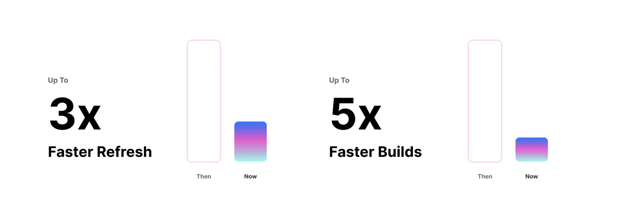 이번에 Next.js 에서 Rust 컴파일러로 변경되면서 프로젝트 빌드 속도가 3배 빨라지고, 코드 변경으로 인한 실시간 새로고침 속도는 5배 빨라졌다고 한다. 웹 전용 오픈형 플랫폼인 SWC를 이용하는데, SWC 창시자가 최근 vacel에 합류하신 강동윤 님.