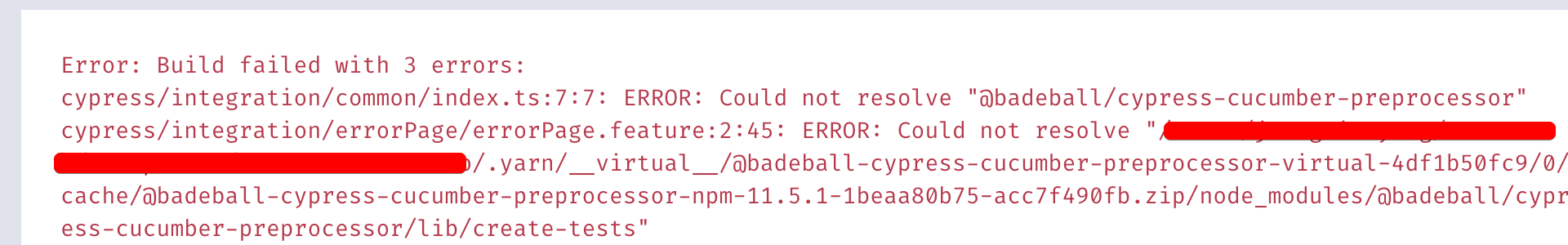 Cucumber와 pnp 호환에 문제가 있나 싶었더니, Cucumber 뿐 아니라 다른 모듈들도 찾지 못하는 것을 확인할 수 있었고, Cypress 환경 자체에서 pnp 모듈을 제대로 불러오지 못하는 것을 알 수 있었다.