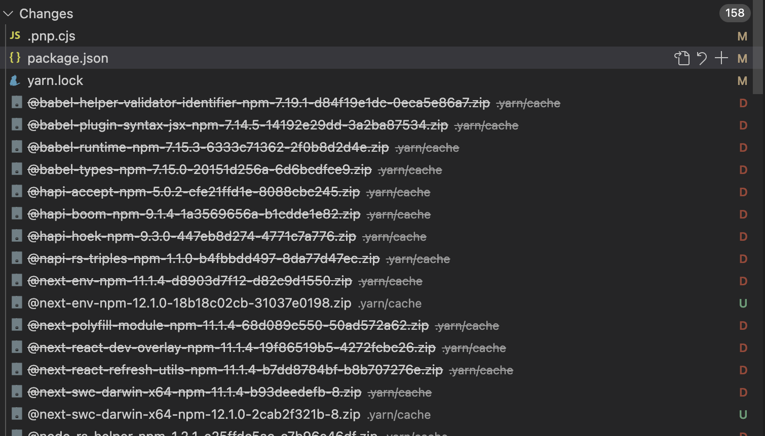 우선 pnp에서 Dependency 버전 업데이트 등으로 인한 Dependency Tree 변경사항이 생길 때마다 change Files 개수가 급격히 많아진다.