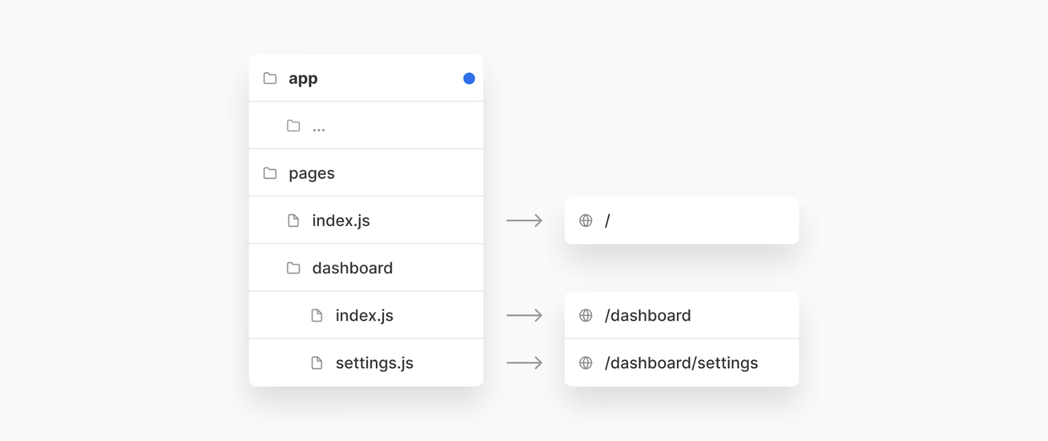 뭔가 기존의 pages 디렉토리로 하기에는 이미 내부적으로 너무 복잡한 상태여서 새로운 렌더링 방식 적용에 한계가 있어서 app 디렉토리 라는 것을 새로 만든 듯한 느낌이다.