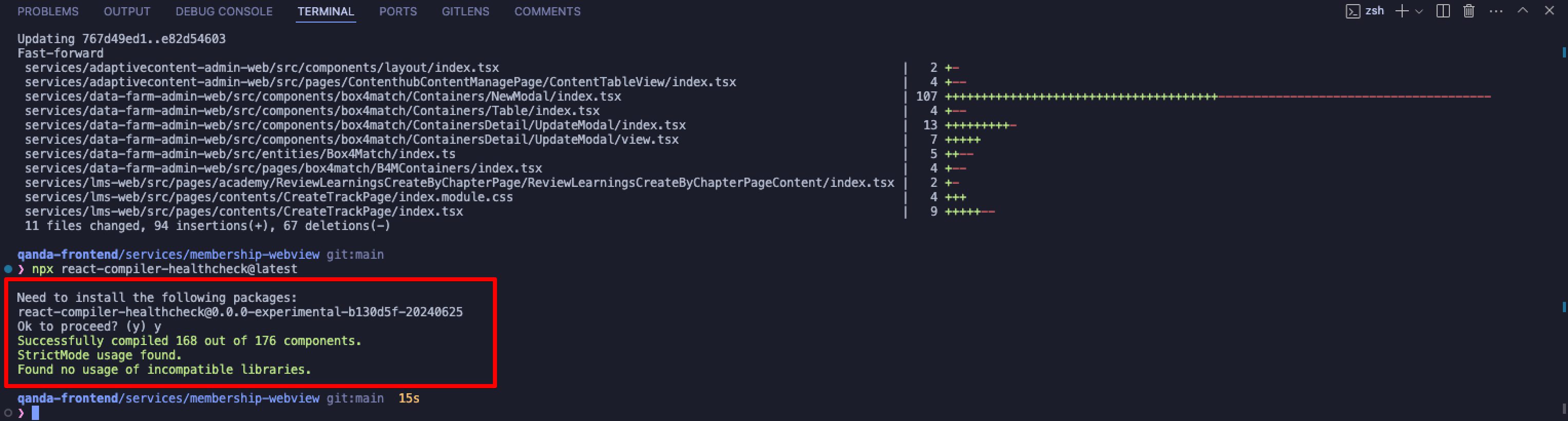 위 프로젝트에서는 총 176개의 컴포넌트 중 168개각 성공적으로 컴파일 했다고 나온다.