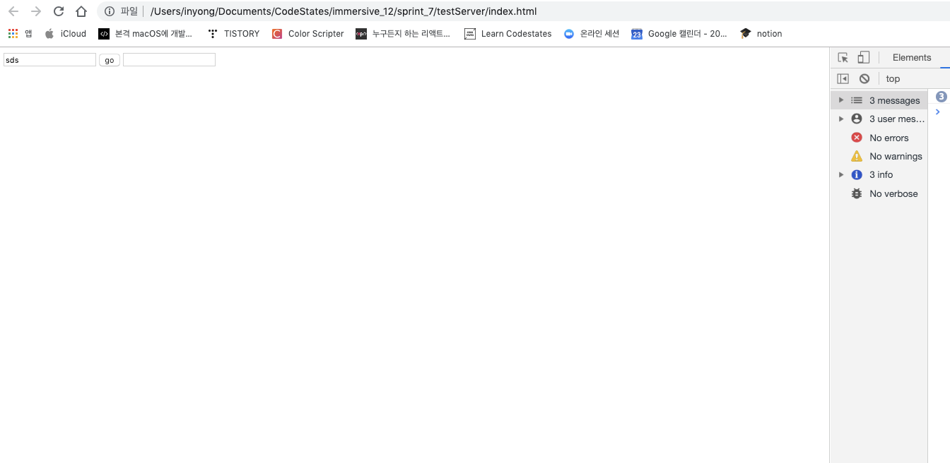 - index.html : 서버에게 요청 및 응답받을 클라이언트