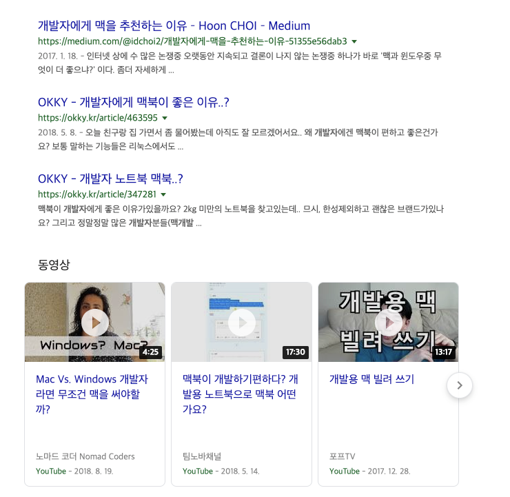 google '개발자 맥북' 검색화면 npm 환경에서 쉽게 모듈을 설치하고 그냥 쓰기만 하면 되다니... 개발자들이 왜 굳이 맥북을 쓰는지 몰랐는데, 지금은 완전히 알 것 같다..